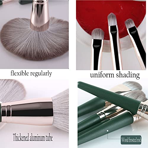 XFLYP 14 pezzi-Set di Pennelli Professionali per Trucco, Con scatola di Immagazzinaggio, Adatta per Blush, Fondotinta, Correttore, Ombretto, Pennello da sfumatura (Verde)