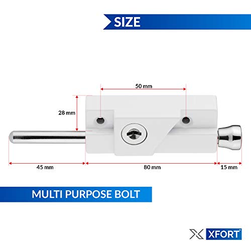 XFORT Chiavistello Multiuso, Chiavistello Di Sicurezza Con Serratura a Chiave, Serratura Universale Con Chiave Per Uso Interno Ed Esterno, Fornito Con 2 Chiavi, Bianco