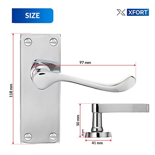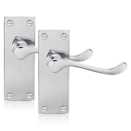 XFORT Cromo Elegance Range lucido cromato vittoriano scorrimento maniglie a leva, maniglia per porte interne in legno cromato lucido, design contemporaneo per porte interne in legno (1 paio)