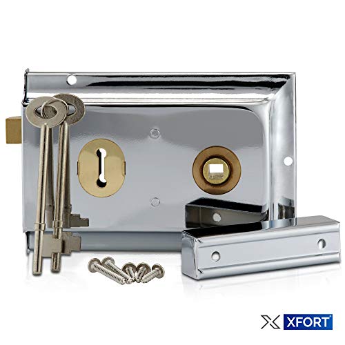 XFORT 6 "x 4" Cromo Lucido Rim Sashlock, serratura per porte con chiavistello, resistente alla corrosione ideale per cancelli o porte esterne,perfetto per tenere al sicuro bambini e animali domestici