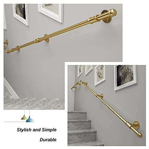 XFSHKJS Corrimano Moderno per Scale, 1 m 1,5 m 2 m 2,5 m 3 m Barra di Supporto di Sicurezza Corrimano per Scale fissato al Muro per Interni ed Esterni, Kit Completo di Staffa per corrimano Dorato