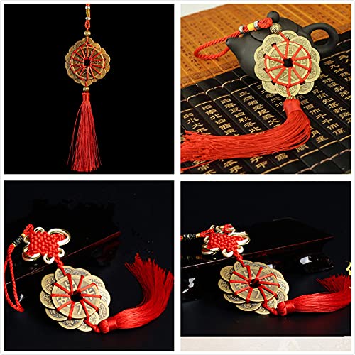 Ottimo materiale: dimensioni: ogni moneta ha un diametro di circa 2,4 cm, ogni moneta portafortuna con nodo cinese è di circa 35 cm. Realizzato in lega di metallo e stoffa, e la superficie delle monete è galvanizzata, robusta e abbastanza resistente, non facile da erodere e piegare, può essere conservata e applicata per l'anno successivo.