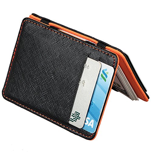 Xhorizon Porta Carte di Credito Portafoglio Mini di Design Speciale Molletta Magica per Denaro (arancione)