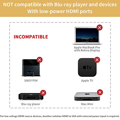 ✌ 【Non Compatibile】 Il Adattatore HDMI VGA NON supporta i dispositivi Sony PS3/PS4, tutti i dispositivi Apple (sistemi Apple MacBook Pro, Apple TV ecc.);