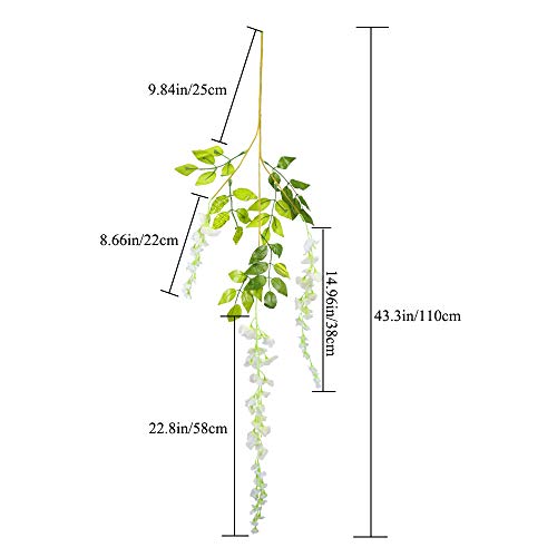 XHXSTORE 12pcs Fiori Finti Pendenti Glicine Seta Fiori Rampicanti Artificiali da Esterno Interno Fiori Artificiali Cadenti per Decorazioni Casa Soggiorno Wedding Balcone Vaso Giardino 110cm Bianco