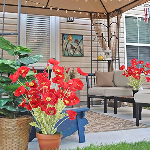 XHXSTORE 6PCS Fiori Finti Artificiali Fiori Papaveri Rosso Bouquet Fiori Finti Per Decorazioni Fiori Papaveri Artificiali da Interno Fiori di Seta per Casa Tavolo Giardino Matrimonio Vaso Cimitero