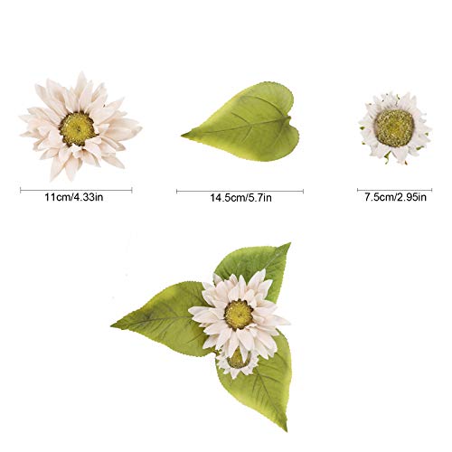 Le teste di girasole e le foglie verdi sono realistiche e belle, molto adatte per abbellire clip, fasce per capelli, cappelli, vestiti, pagine di album, biglietti, album fotografici, fiocchi, artigianato, matrimoni, feste, ecc.