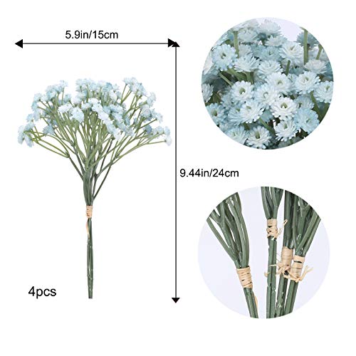 XHXSTORE 4 Pezzi Fiori Artificiali Gypsophila Artificiale Fiorellini Blu Fiori in Plastica Bouquet Interno ed Esterno Fiori Finti Gypsophila per Decorazioni da Vaso Matrimonio Casa Cimitero Fai da Te