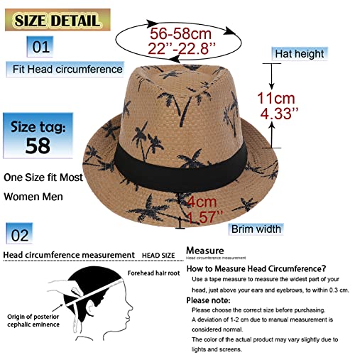 Xiang Ru Cappelli alla moda Panama Fedora per uomo donna, unisex Manhattan treccia paglia corta cappello da sole Trilby spiaggia, F: kaki chiaro, Taglia unica