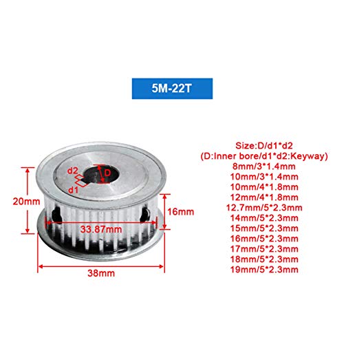 Xianglaa-Timing Pulley Pulley Timing HTD 5M-22T 223teeth, Puleggia di Trasmissione con chiavetta, Larghezza della Cinghia da 16 mm, 8/10/12/12.7/14/18 / 19mm Foro, Portachiavi puleggia Produzione