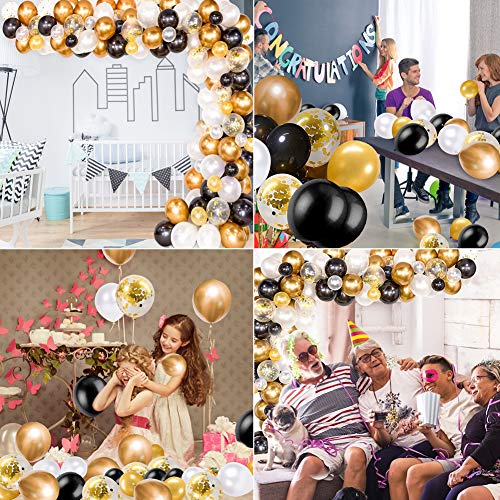 Xiangmall 128 Pezzi Kit Ghirlanda Palloncini Nero e Oro Arco Palloncini in Lattice Confetti Palloncini Metallici Striscia Palloncini Tying Strumento Festa Compleanno Laurea Centrotavola Decorazioni