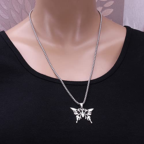 Xiangqian Collana con ciondolo a forma di farfalla, in acciaio inox, con ciondolo a forma di farfalla, in acciaio inox, gioiello Electrolytic Polishing Process Does Not Fade Valentine's Day Gift
