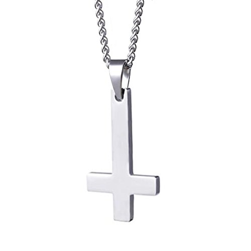 Xianli Wang - collana da uomo, con ciondolo a forma di croce capovolta, in acciaio INOX
