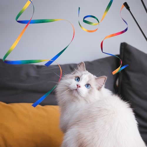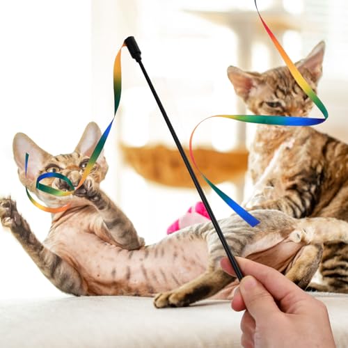 Xianynow 5 Bastoncini per Gatti, Bacchetta Interattiva, Giocattolo Gatto Arcobaleno, Lungo Giocattolo Interattivo per Gatti - Asta da Pesca per Gatti con Nastro Arcobaleno (30 cm)