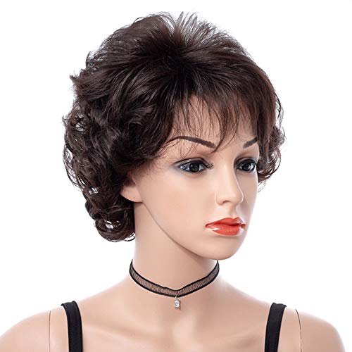 Xiaofeng214 Parrucche Ondulate Brevi Marrone Scuro Donne Sintetiche Capelli Sintetici con Frangia per la Parrucca Madre Medio anziana Femmina Fibra ad Alta Temperatura