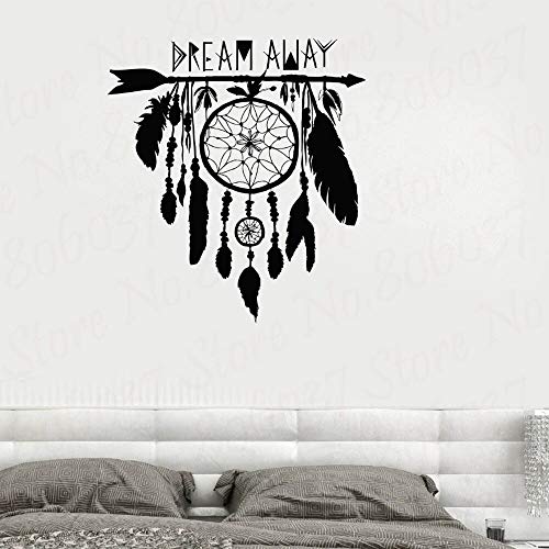 XIAOHUKK Dream Catcher Decalcomanie da muro in vinile Decalcomania da sogno Amuleto di piume Simbolo di notte Decalcomania indiana Camera da letto Soggiorno Murale