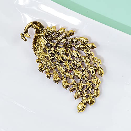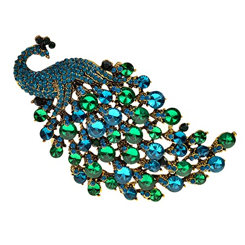 XIAOJIA Eleganti Spille a Forma di Pavone con Strass per Le Donne Spille per Uccelli di Grandi Dimensioni in Cristallo per Animali Accessori per Gioielli - Placcate in Argento