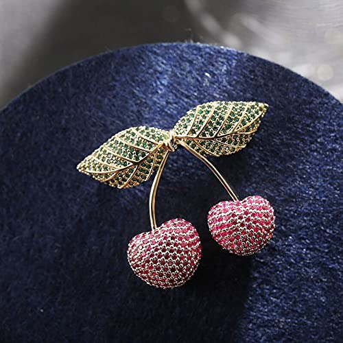 XIAOJIA Splendide Spille di Ciliegie Verdi Rosse per Le Donne Ciliegie di Frutta Spilla con Strass Spilla di Gioielli di Lusso Broche-Oro-Colore