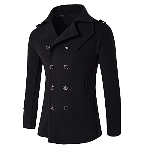 XIAOJU Trench da Uomo Parka Doppio Petto Capispalla Classico Colletto rovesciato Manica Lunga Giacca a Vento Leggera Casual,Black-L