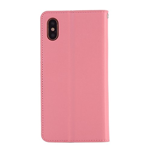 Xiaojuan's case per iPhone X Custodia in Pelle Flip Orizzontale Lambskin Texture con Porta e Fessure per Carte e Portafogli,è Compatibile con iPhone X (Color: Pink)