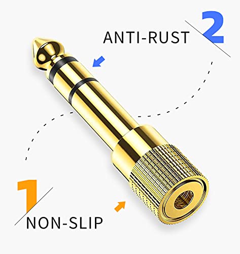 XIAOKEKE Adattatore Jack Cuffie 6,35mm Maschio a 3,5mm Femmina (2 Pack), Adattatore Jack 3.5 6.3, Connettore Jack Adattatore Stereo 6.3 a 3.5 Placcato Oro