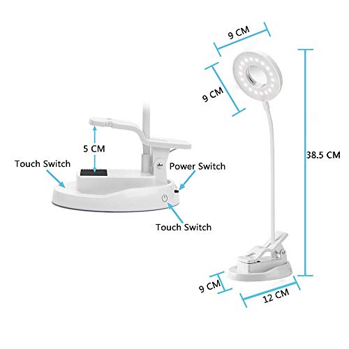 XIAOKOA Lampada da tavolo a LED,USB Ricaricabile,Luce notturna per camera da letto specchio per trucco,Lampada da tavolo Touch Sensitive Control e lampada a clip