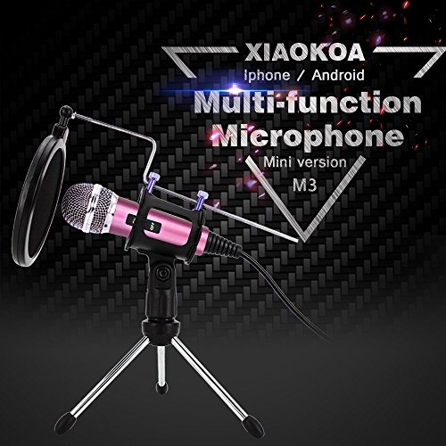XIAOKOA PC Microfono a condensatore, Set microfoni per Computer laptop PC iphone, Includere lettore microfono da tavolo con filtro acustico a doppio strato per registrazione, podcasting, chat in linea come Facebook, MSN, Skype, con cavo audio (M3-pink)