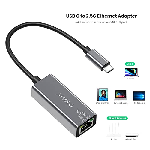XIAOLO Adattatore di rete USB C a 2.5G tipo C a RJ45 LAN Ethernet, scheda 2500/1000/100Mbps Gigabit Ethernet, adattatore Internet per Windows 7/8/10, XP, Vista, Mac/OS/Linux, RTL8156B
