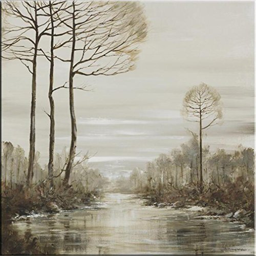 XIAOMEIXI Pittura a olio dipinta a mano con arte paesaggistica affiancata sul fiume pronto per appendere per la decorazione domestica 25 * 25cm