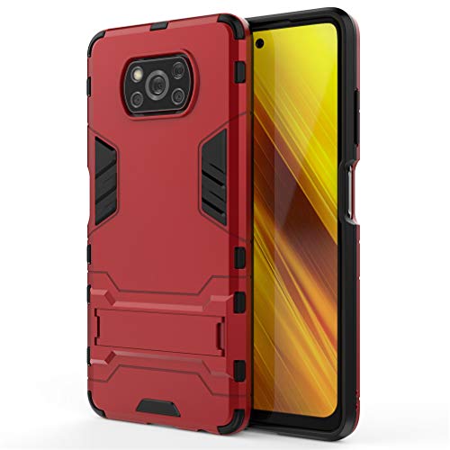 MHHQ per Xiaomi Poco X3 NFC Custodia, 2 in 1 Armour Hybrid Dual Layer Armatura Defender PC + TPU Custodie Case Cover con Supporto per Xiaomi Poco X3 NFC -Red