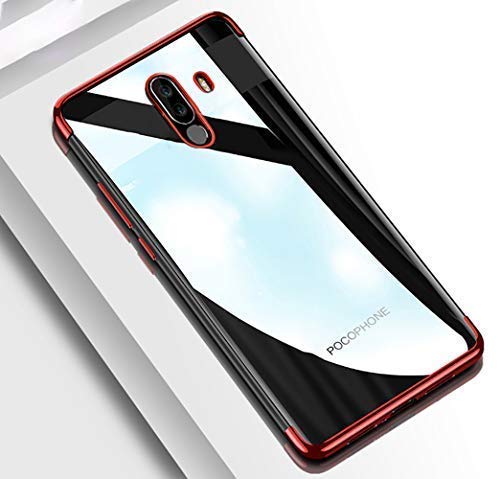 Xiaomi Pocophone F1 Custodia Cover, QULLOO Silicone TPU Trasparente Morbida Finissima, Custodia Protettiva Custodia per Xiaomi Pocophone F1 - Rosso