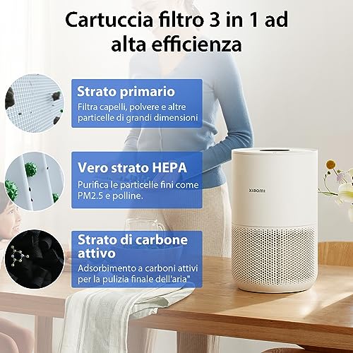 Xiaomi purificador de Aire 4 Compact con Filtro hepa, Filtro Efectivo 3 en 1, trampas de 0.3 micras, PCADR 230 m³/h, Entrada de Aire de 360°, Adecuado para 27 m², monitoreo en Tiempo Real, Blanco