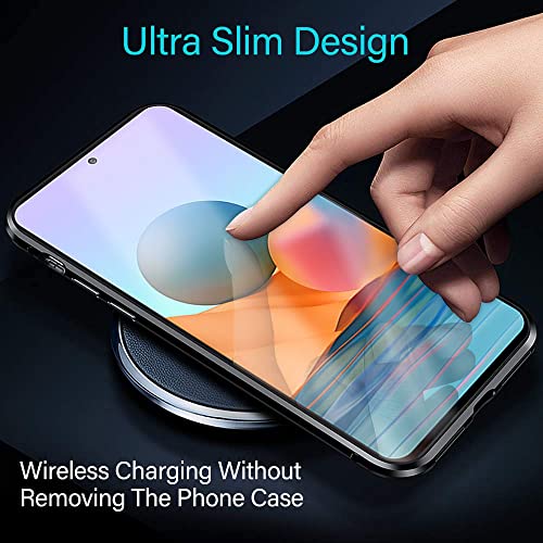 Per Xiaomi Redmi Note 10 PRO Cover, Adsorbimento Magnetica Custodia, E-Lush Caso 360 Gradi Protezione Anteriore e Posteriore Vetro Temperato Cover Trasparente Custodia Flip Case Metal Bumper, Nero
