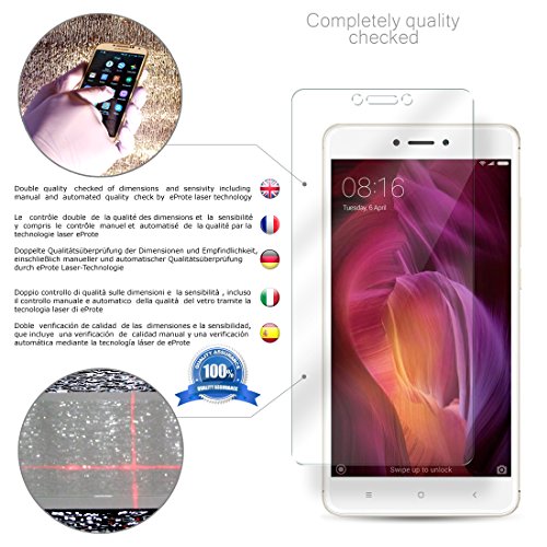 Xiaomi Redmi Note 4x proteggi schermo, eProte pellicola protettiva in vetro temperato per Xiaomi Redmi Note 4x, Note 4, 5.5 pollici - 9H, antiurto, antischegge, antigraffio, rivestimento oleorepellente, HD