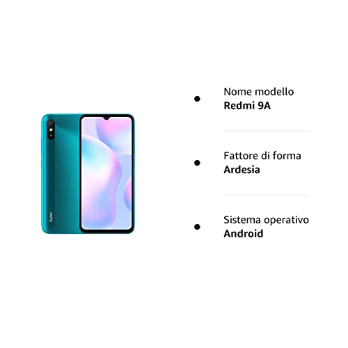 Xiaomi Redmi 9A Smartphone 2Gb Ram 32Gb Rom Telefono Cellulare, Schermo 6.53” Hd+ Mtk Helio G25 Processore Octa Core, Doppia Sim+Micro-Sd, 13 Mp Camera Ai Face Unlock Globale Versione (Verde)