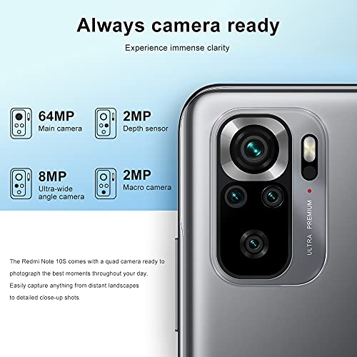 Xiaomi Redmi Note 10S Smartphone 6GB 64GB Telefono,con NFC,MediaTek Helio G95 Processore,6.43"AMOLED DotDisplay,(64MP+8MP+2MP+2MP) Quad Camera,Dual SIM Card,AI face unlock Versione Globale(Grigio)