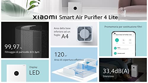 Xiaomi Smart Air Purifier 4 Lite, Purificatore d'Aria Smart 4 Lite, Controllo Vocale, Schermo Touch OLED, Generatore di Ioni Negativi, Sensori ad Ottima Precisione