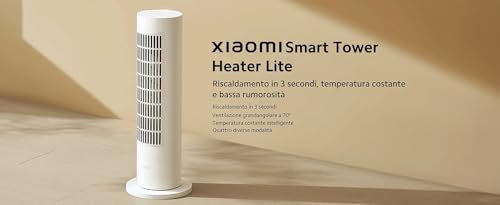 Xiaomi Smart Tower Heater Lite, Termoventilatore Aria Calda, Riscaldamento in 3 secondi, Ventilazione grandangolare a 70°, Quattro modalità, Controllo tramite App, Leggero da spostare, Bianco