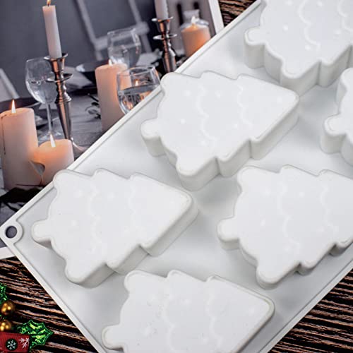 XiaoShenLu Stampi per Torte in Mousse Francese in Silicone, Stampo per Candele di Sapone al Cioccolato Fai-da-Te 3D Bakeware, 6 Fori Albero di Natale Diandian