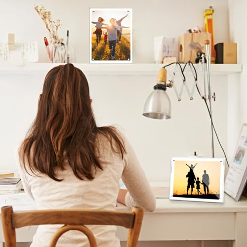 Posizionamento Stabile: cornici portafoto trasparente acriliche Al fine di posizionare più stabile, sulla base dell'originale, abbiamo progettato nella parte posteriore del telaio per aggiungere una piccola barra di supporto, in modo che possa stare saldamente sulla scrivania, non sarà facile da scuotere, il design di inclinazione consente di utilizzare l'angolo migliore per vedere l'immagine chiaramente, senza dover prendere il telaio può essere facilmente apprezzato.