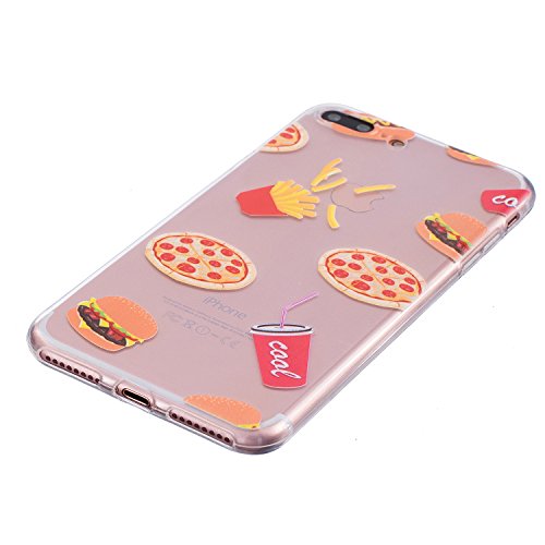 XiaoXiMi Custodia iPhone 7 PLUS Cover in Silicone Trasparente Soft Clear TPU Case Bumper Custodia Protettiva Cover Morbida Flessibile Custodia Liscio Leggero Cover Ultra Sottile Cassa Antigraffio con Disegno Semplice - Carino Hamburger Pizza