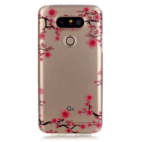 XiaoXiMi Custodia Morbide per LG G5 Cover Trasparente Custodia in Gomma Soft TPU Silicone Case Bumper Caso Flessibile Liscio Cassa Leggero Sottile Custodia AntiGraffio Antiurto - Fiore della Prugna