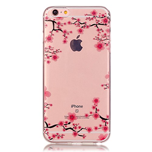 XiaoXiMi Custodia Morbide per iPhone 6/6S Cover Trasparente Custodia in Gomma Soft TPU Silicone Case Bumper Caso Flessibile Liscio Cassa Leggero Sottile Custodia Antigraffio Antiurto - Fiore della Prugna