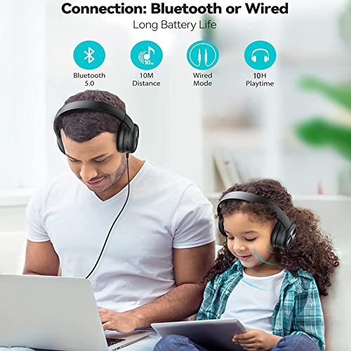 XIAOXIN Cuffie Wireless Bluetooth, Cuffie Senza Fili Over Ear con Microfono Hi-Fi Audio Stereo, Pieghevoli, 3 Modalità, Cuffie Wireless e Cablate, Micro SD/TF per Ufficio/Telefono/PC