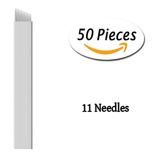 Xiaoyu 50PCS aghi microblading, trucco permanente tatuaggio manuale del sopracciglio lama smussato per le penne del tatuaggio del sopracciglio, bianco, 11 pin