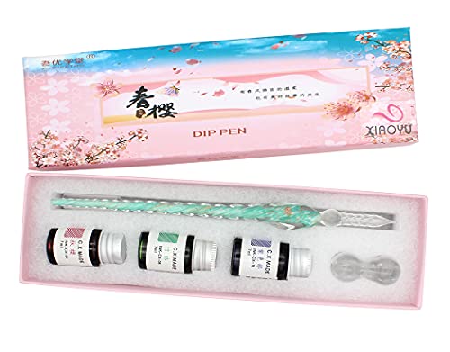 XIAOYU set di penne per immersione in vetro, penna per calligrafia penna per scrittura per forniture per decorazioni artistiche di cancelleria scolastica, verde