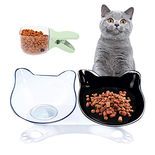XIAQIU Ciotole per Gatti, Ciotola Gatto, Doppio Gatto Ciotola con Supporto, Riduce La Pressione sulle Vertebre Cervicali del Gatto, 15°Inclinato Ciotole, per Animali Ciotola