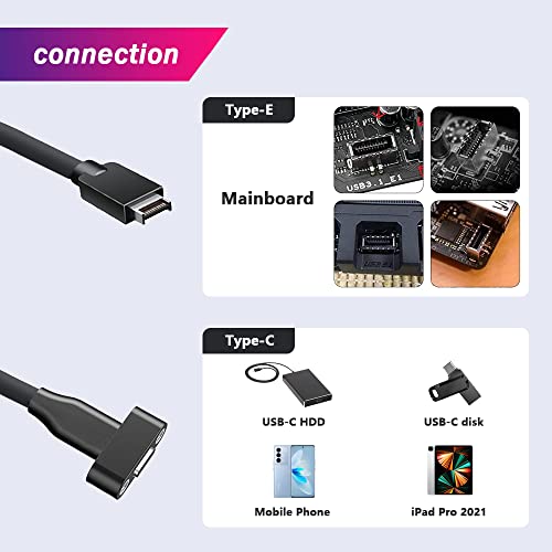 【Facile da usare】: puoi aggiungere rapidamente porte tramite gli slot di tipo E disponibili sulla scheda madre ed espanderle allo chassis del PC per collegare vari dispositivi USB-C esterni. Plug and Play, nessun driver richiesto.