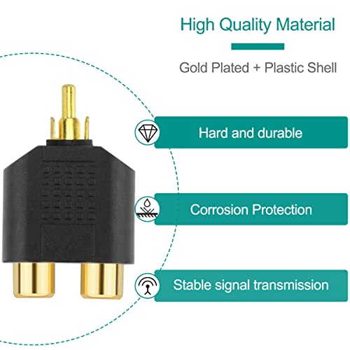 ✅ [Ampiamente usato]: splitter RCA da 1 a 2 supporto per dispositivi con connessione RCA, come ricevitore stereo, altoparlante, videoregistratore VCD/lettore DVD, ricevitore AV, amplificatore, radio, subwoofer, decoder via cavo/satellitare, HDTV, TV e altro dispositivi con connessione RCA.