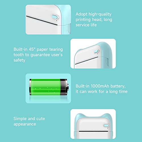 XIBANY Stampante tascabile portatile Stampante termica BT wireless Supporto funzionamento semplice Foto Note Errori Stampa promemoria testo Blu Viene fornito con 6 rotoli di carta sensibile al calore